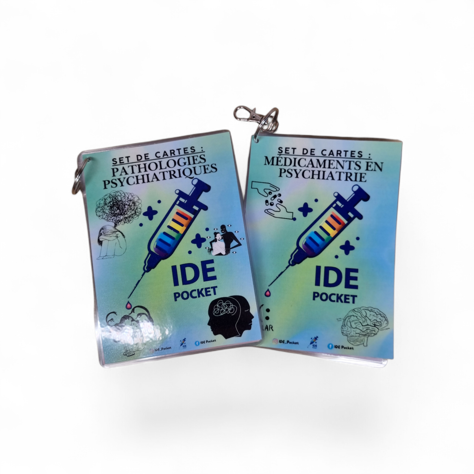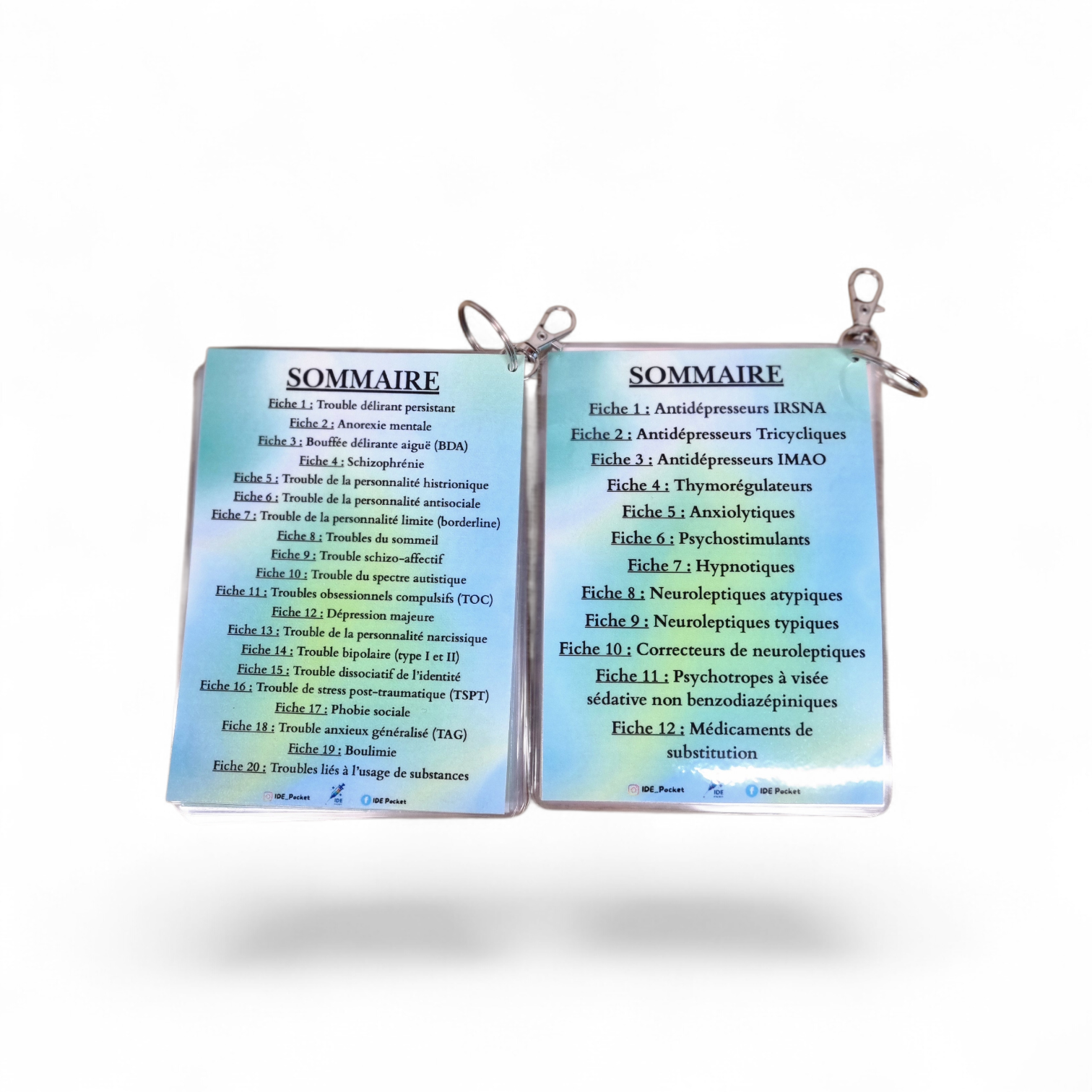 1️⃣ Set Pathologies Psychiatriques (10 cartes recto-verso, format A6, plastifiées, reliées par anneau + crochet)
